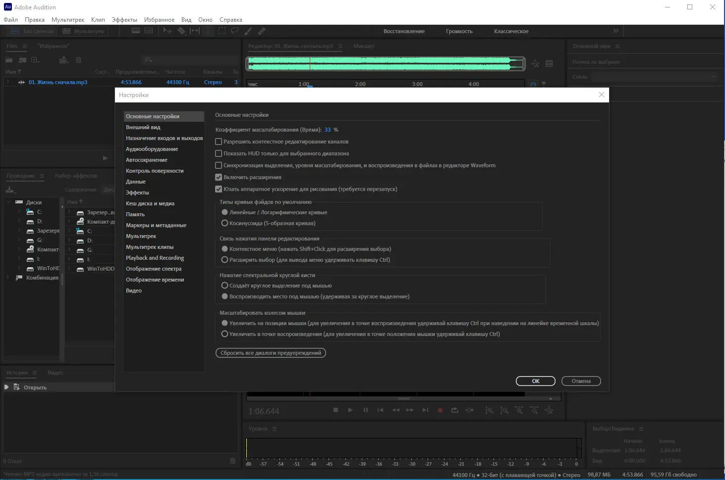 Работа в Adobe Audition начинается с выбора режима: редактирование одиночного аудиофайла или микширование многодорожечного проекта. В первом случае доступна точная коррекция формы волны, анализ спектра, удаление шумов и наложение эффектов. Во втором — можно импортировать несколько источников, выстраивать их по дорожкам, задавать громкость, панорамирование и применять автоматизацию параметров. Программа поддерживает работу с лупами, маркерами и имеет встроенные инструменты для восстановления повреждённых записей. Видеоряд отображается в отдельной области, что позволяет точно синхронизировать звук с кадрами. Все изменения применяются в реальном времени, а отмена действий возможна в несколько уровней, что повышает надёжность редактирования. Экспорт проекта осуществляется в различные форматы, включая WAV, MP3, AIFF и другие, с возможностью настройки битрейта и метаданных.