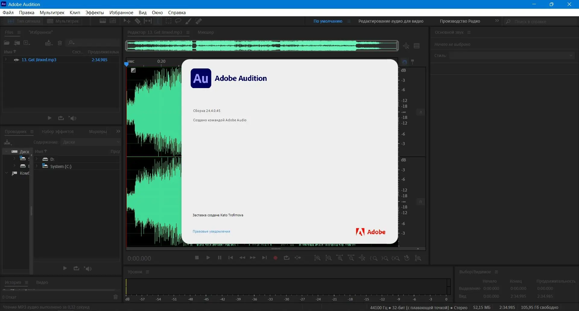 Adobe Audition — профессиональный аудиоредактор, предназначенный для записи, редактирования и обработки звука с высокой точностью. Программа подходит как для начинающих пользователей, так и для опытных звукорежиссёров, обеспечивая широкий набор инструментов для создания качественного аудиоконтента. Поддержка многодорожечного монтажа, продвинутые эффекты и анализ сигнала делают её незаменимой в работе с подкастами, музыкальными проектами и звуковым дизайном к видео.