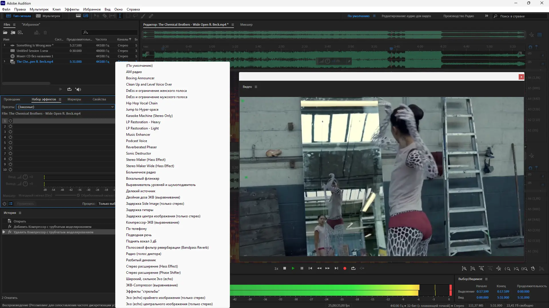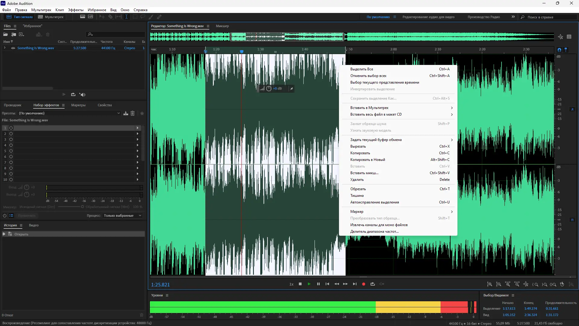 Работа в Adobe Audition строится вокруг двух основных режимов: многодорожечного редактирования и редактирования отдельных файлов. В первом режиме можно микшировать несколько аудиодорожек, накладывать эффекты, синхронизировать звук с видео и управлять уровнями громкости. Во втором — выполняется точечное редактирование, удаление шумов, коррекция тембра и другие операции с отдельными аудиофайлами. Программа позволяет использовать лупы, автоматическую маркировку событий, а также применять предустановленные пресеты для быстрого достижения нужного звучания. Все изменения отображаются в реальном времени, что ускоряет процесс создания финальной версии аудиопродукта.