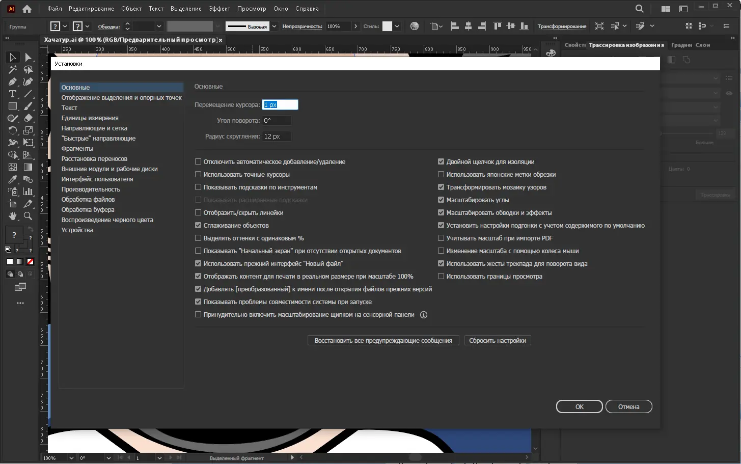 Интерфейс Adobe Illustrator построен вокруг рабочего пространства с панелями инструментов, слоями и настройками свойств объектов. Пользователь может создавать новые документы с заданными параметрами, импортировать изображения, редактировать пути и применять стили. Основные действия выполняются с помощью инструментов «Перо», «Прямой сегмент», «Форма» и «Тип». Каждый элемент можно трансформировать, масштабировать и анимировать с помощью расширенных функций преобразования. Портативная версия запускается без установки и не требует прав администратора при стандартном использовании, однако для стабильной работы рекомендуется предварительно установить Microsoft Visual C++ Redistributable.