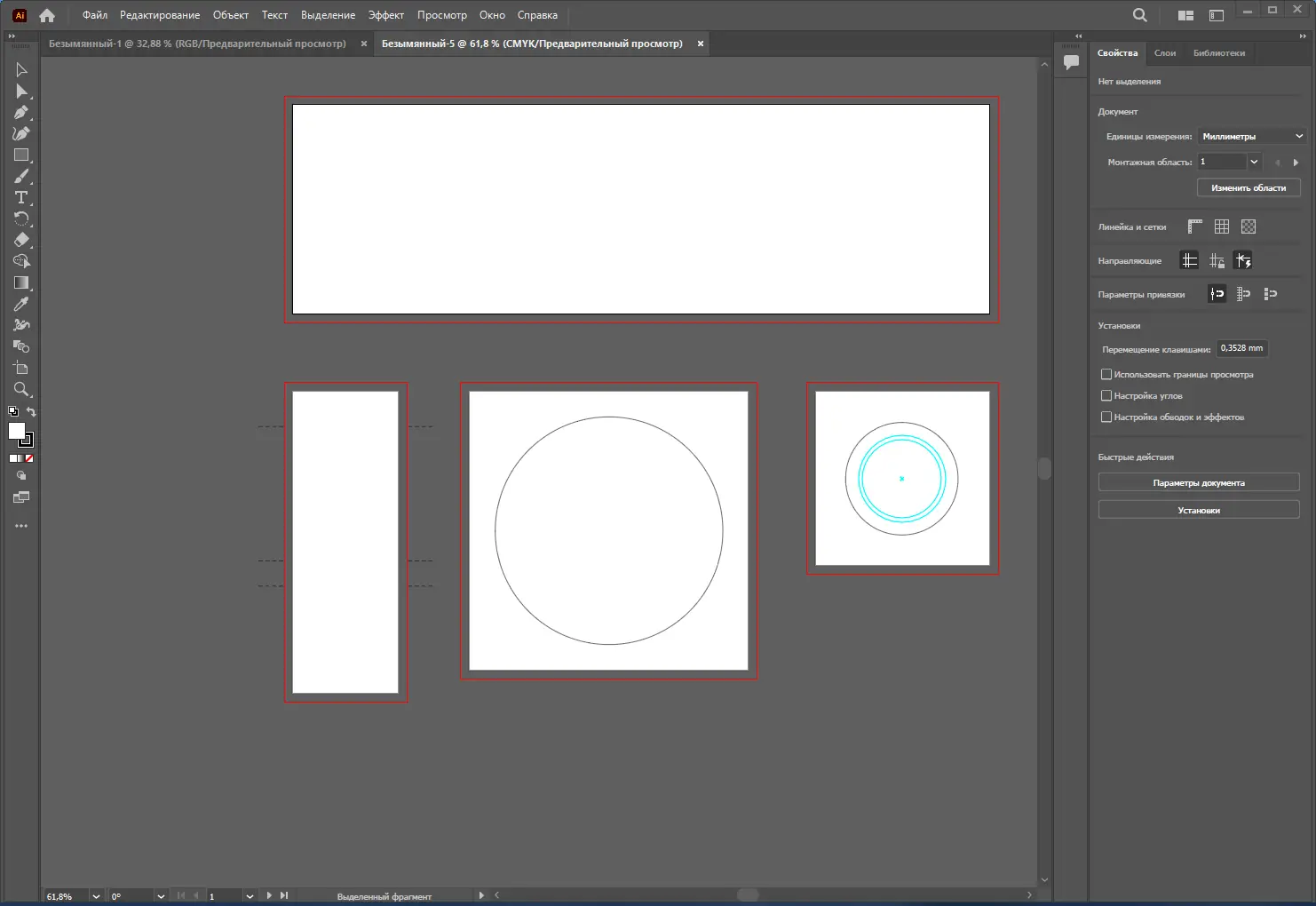 - Поддержка нескольких монтажных областей упрощает организацию макетов, особенно при разработке интерфейсов или серийных изделий, таких как визитки, баннеры или иконки.