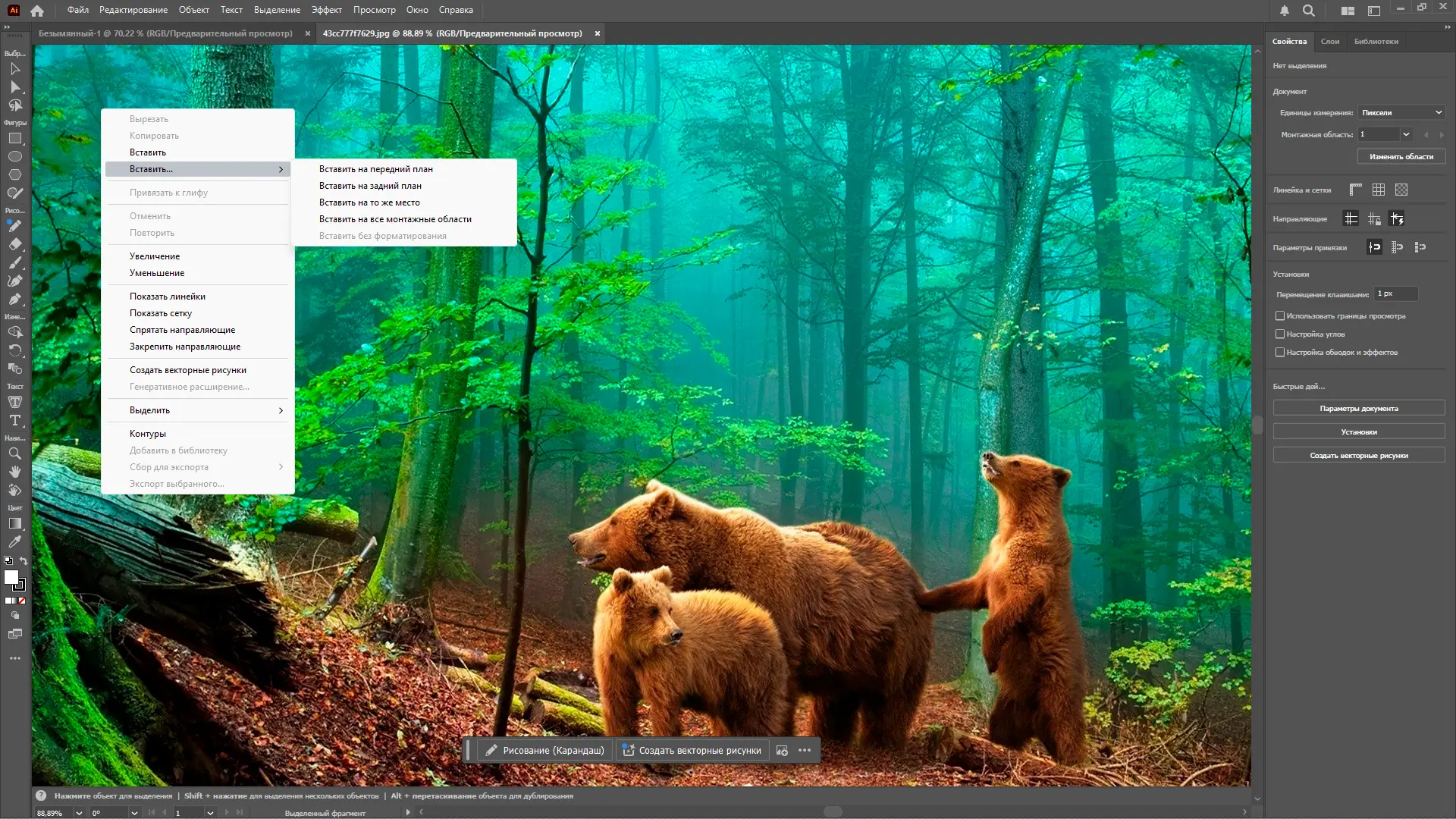 Работа в Adobe Illustrator строится вокруг векторных объектов, которые можно бесконечно масштабировать без потери качества. Пользователи могут создавать сложные композиции с использованием пера, фигур, кистей и графических стилей. Инструменты для редактирования узлов и контуров позволяют добиваться максимальной точности. Особое внимание уделено типографике: можно легко редактировать шрифты, преобразовывать их в кривые и применять эффекты. Новые функции, такие как Retype, позволяют распознавать текст на растровых изображениях и редактировать его как обычный векторный, что значительно упрощает работу с чужими макетами.
