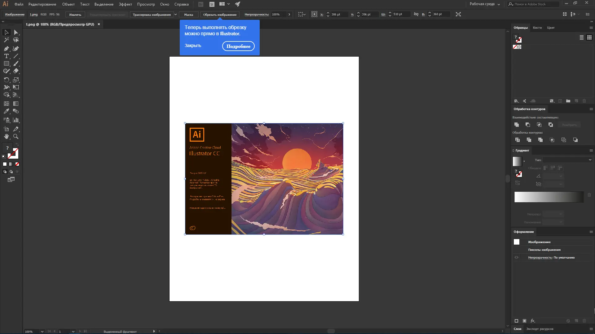 - Возможность конвертации растровых изображений в векторные с помощью функции Image Trace