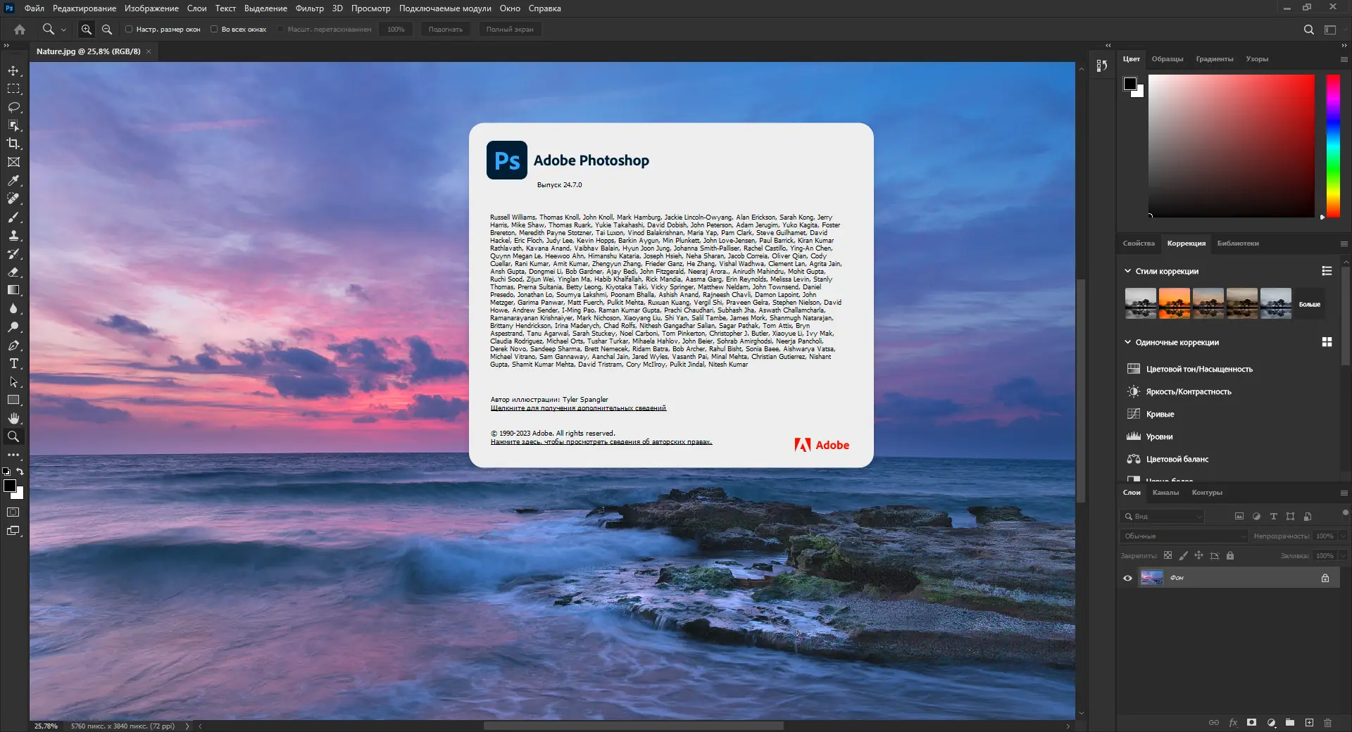 Adobe Photoshop 2023 — это передовой инструмент для обработки изображений, ориентированный на профессионалов и энтузиастов цифровой графики. Программа обеспечивает глубокий контроль над редактированием фото, позволяет работать с многослойными проектами, применять сложные фильтры и создавать оригинальные композиции. С её помощью можно выполнять цветокоррекцию, ретушь, создавать веб-дизайн и логотипы, а также реализовывать творческие идеи любой сложности.