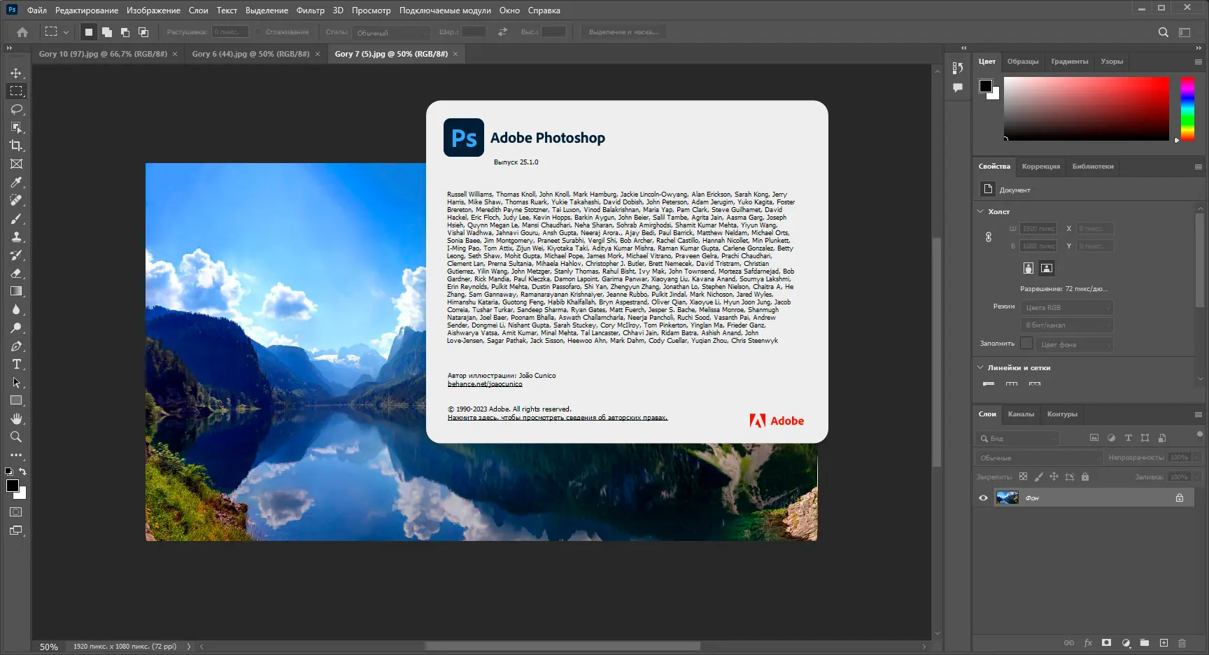 Adobe Photoshop 2024 — профессиональный редактор растровой графики с расширенными инструментами для обработки изображений, векторной работы, цветокоррекции и создания цифрового искусства. Программа поддерживает множество форматов, включает облачные функции, нейросетевые фильтры и улучшенное взаимодействие с другими приложениями Adobe. Новая версия предлагает более точное выделение объектов, современные градиенты и расширенные типографические возможности, в том числе для азиатских и ближневосточных языков.