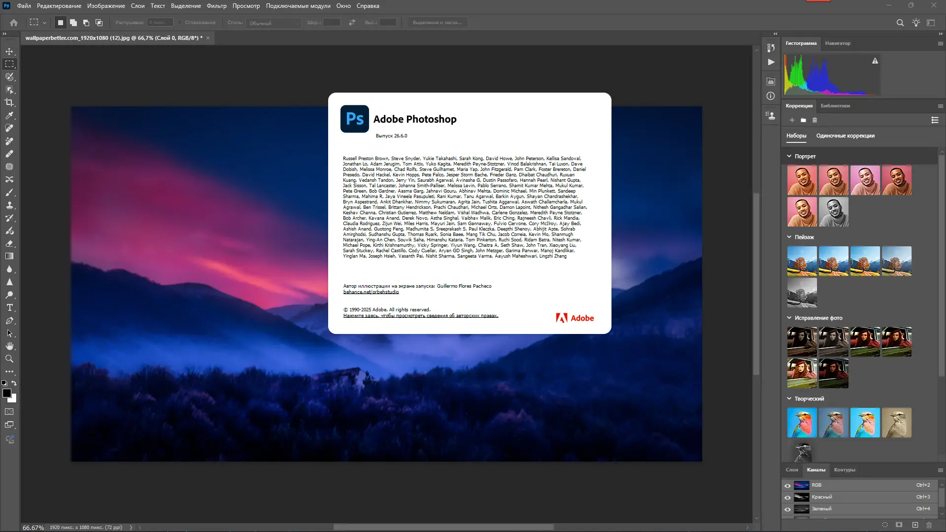 Adobe Photoshop 2025 представляет собой обновлённую версию профессионального редактора, ориентированного на работу с точечными изображениями. Программа включает расширенные инструменты для манипуляции слоями, работы с контурами, управления цветом и точной коррекции деталей. Она активно применяется в полиграфии, веб-дизайне, цифровой фотографии и иллюстрации благодаря своей гибкости и точности.