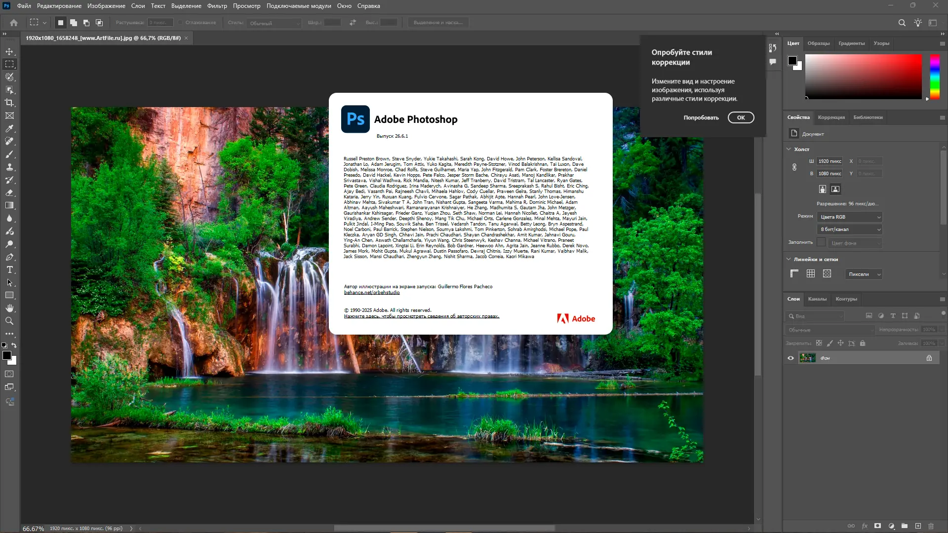 Adobe Photoshop 2025 представляет собой профессиональное решение для обработки цифровых изображений, используемое дизайнерами, фотографами и иллюстраторами по всему миру. Программа позволяет не только редактировать существующие файлы, но и создавать сложные композиции с использованием множества слоёв, масок и эффектов. Поддержка различных графических форматов, включая PSD, JPEG, PNG, TIFF и RAW, делает её универсальным инструментом для любых задач в области визуального контента. Новые алгоритмы обработки изображений на основе технологий искусственного интеллекта обеспечивают высокую точность выделения объектов и улучшение качества фото.