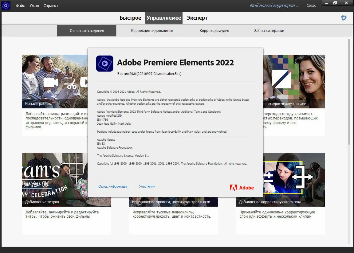 Adobe Premiere Elements — это доступный инструмент для нелинейного видеомонтажа, разработанный для пользователей, которые хотят создавать качественные видео без сложного обучения. Программа предлагает автоматизированные функции, упрощающие работу с материалами, и при этом сохраняет возможность ручной настройки. Она идеально подходит для семейных фильмов, путешествий, праздников и других личных проектов. Благодаря интеграции технологий искусственного интеллекта, пользователь может быстро находить нужные фрагменты, улучшать изображение и создавать динамичные ролики.