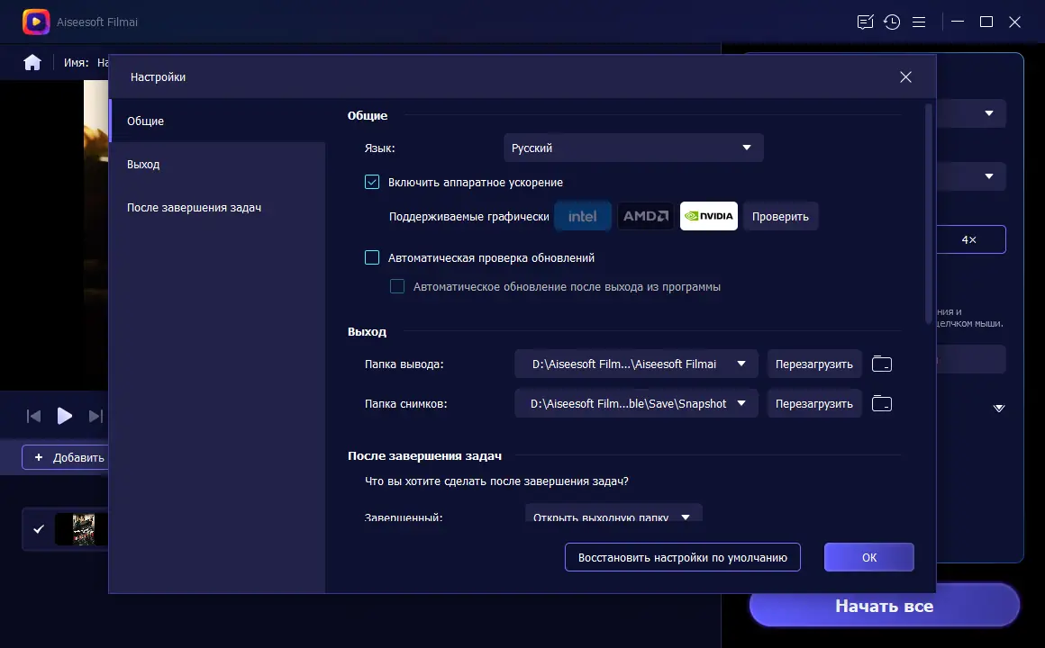Работа с Aiseesoft Filmai