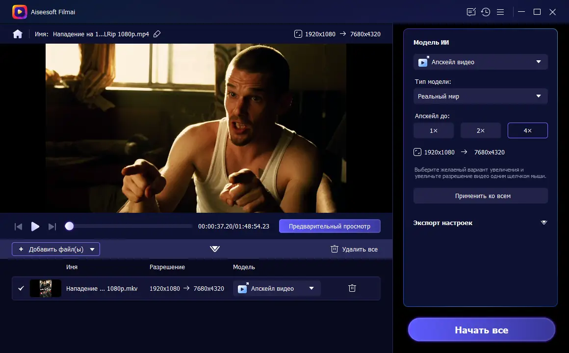 - Эффективное повышение разрешения видео до 4K с сохранением деталей