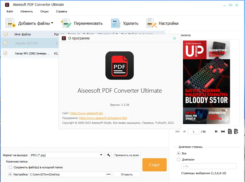 Работа с Aiseesoft PDF Converter