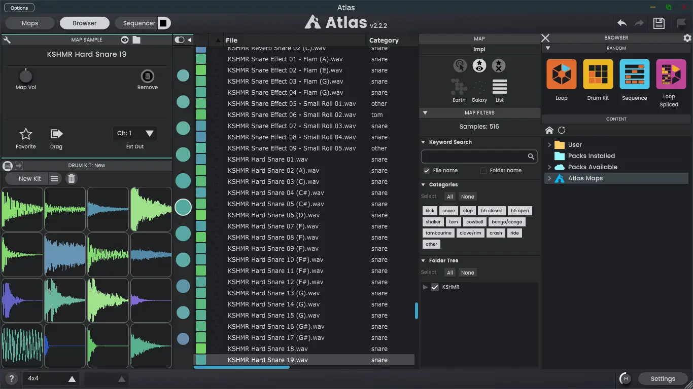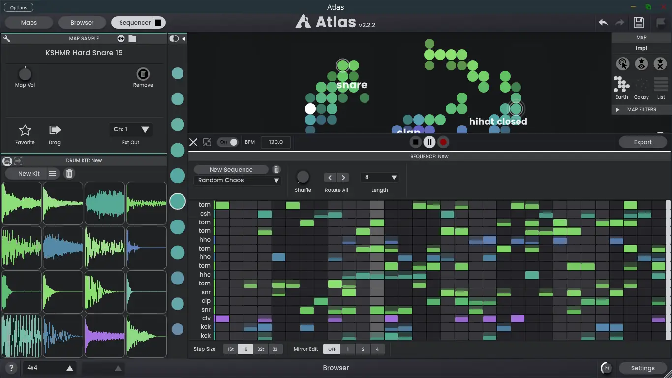 Algonaut представляет собой инновационное программное обеспечение для работы с барабанными семплами, ориентированное на быстрое создание ритмических структур. В основе системы лежит технология автоматического анализа аудиофайлов, которая распознаёт тип звука — хай-хэт, кик, снейр, перкуссию — и строит интерактивную карту назначений. Эта карта даёт визуальное представление о всей библиотеке семплов, упрощая поиск нужного звучания и комбинирование элементов.
