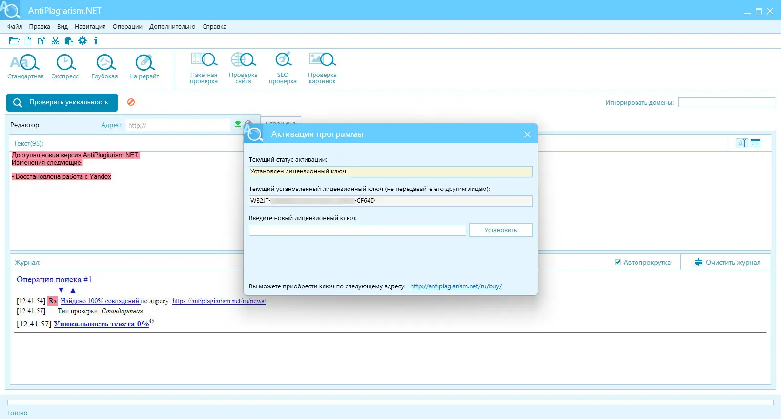 Программа доступна для установки на компьютеры под управлением Windows. После скачивания установочного файла можно приступить к настройке и активации приложения. Поддерживается работа в фоновом режиме, что не мешает одновременному выполнению других задач. Регулярные обновления обеспечивают корректную работу с поисковыми системами, включая восстановленную интеграцию с Yandex. Пользователи могут проверять не только тексты, но и изображения, что делает AntiPlagiarism.NET универсальным решением в сфере контент-анализа.