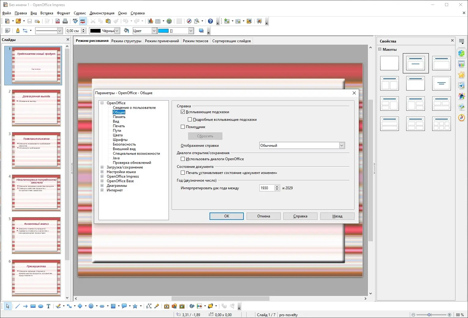 - Impress позволяет разрабатывать динамичные презентации с анимацией, звуком и переходами между слайдами.