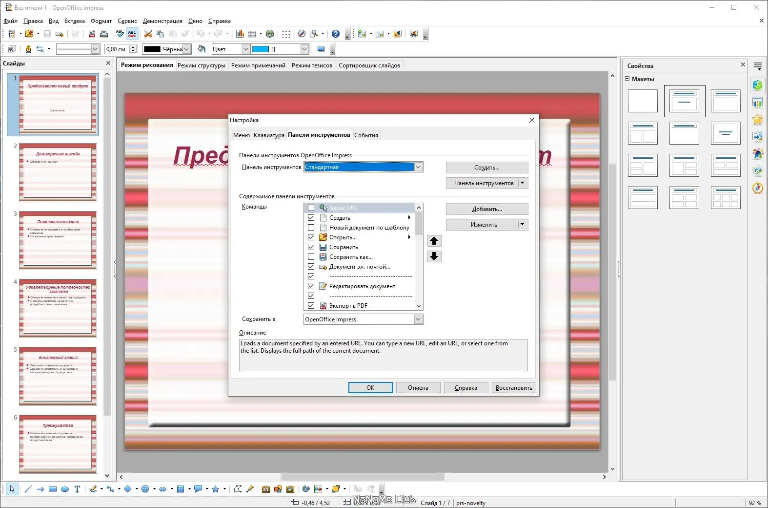 - impress — инструмент для разработки презентаций с эффектами анимации, переходами и поддержкой мультимедиа.