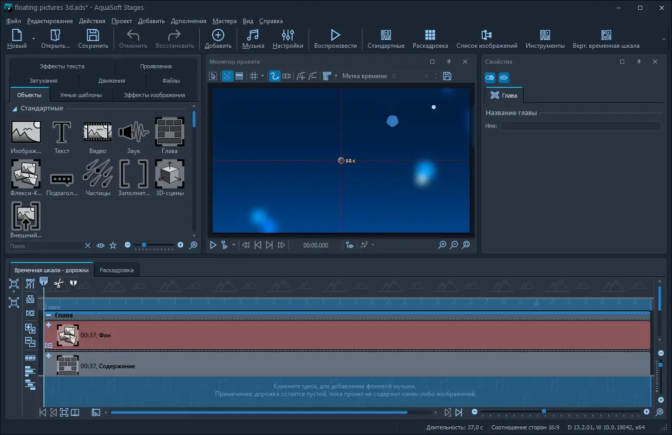 AquaSoft Stages разработана для тех, кто стремится превратить обычные фотографии и видеозаписи в кинематографичные истории. Подходит как для профессиональных видеомонтажёров, так и для активных пользователей, желающих создавать слайд-шоу с эффектами кадрирования, панорамирования, анимации частиц и динамических масок. Программа поддерживает широкий спектр медиаформатов и предлагает глубокий контроль над каждым элементом композиции.