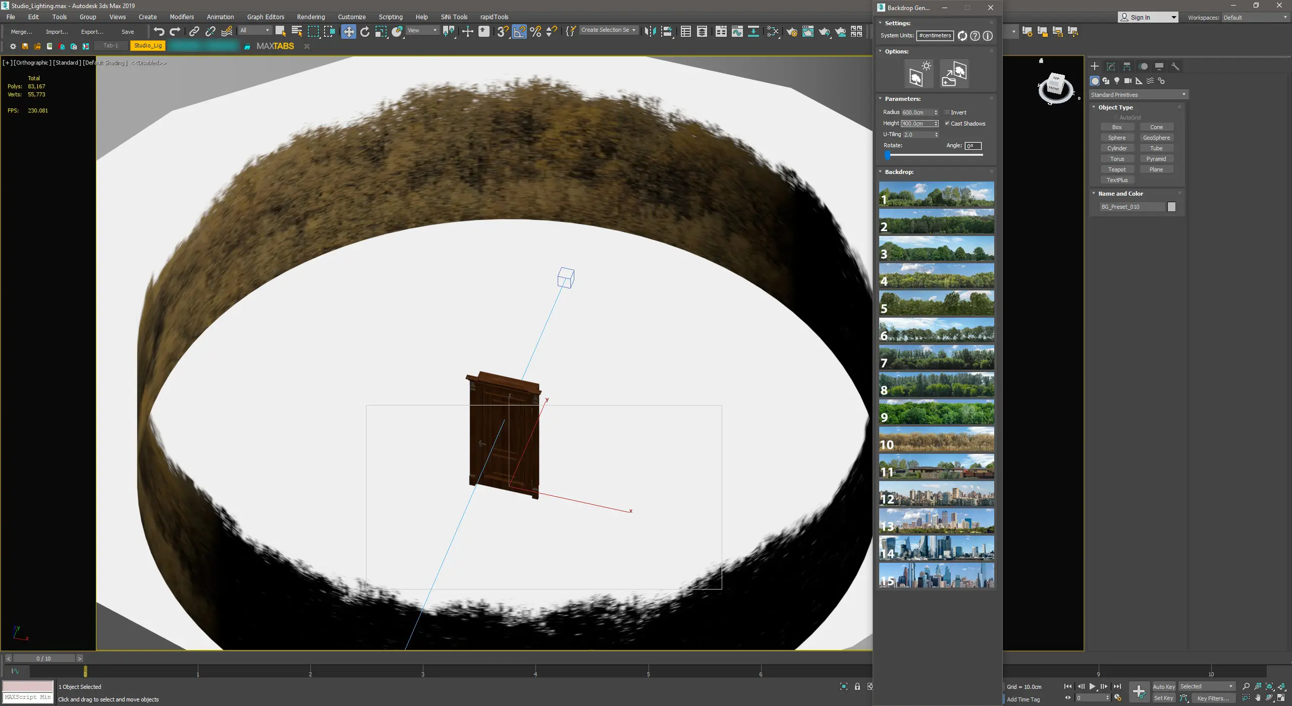 - Автоматизирует создание фоновых элементов в сцене 3ds Max