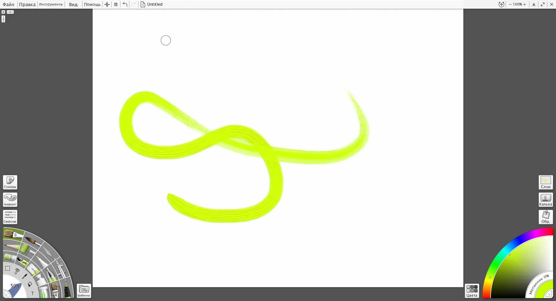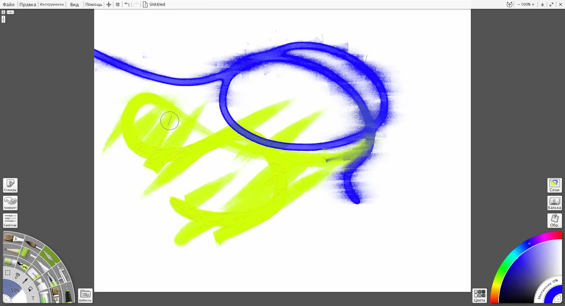 - Цветовая палитра позволяет смешивать оттенки так же, как на настоящей палитре.