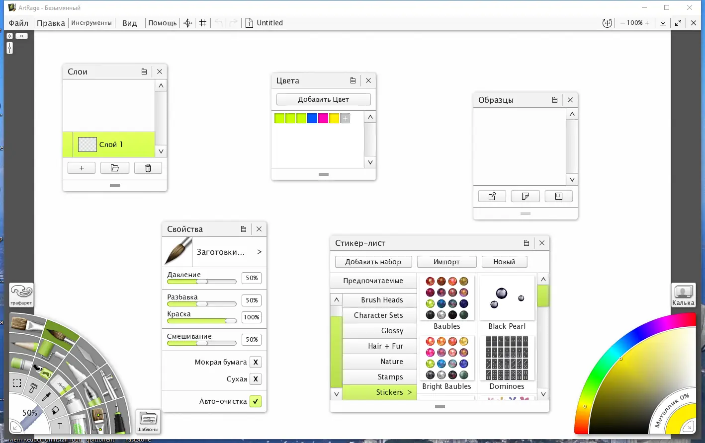 - Реалистичное поведение красок, включая смешивание и текстуру холста.