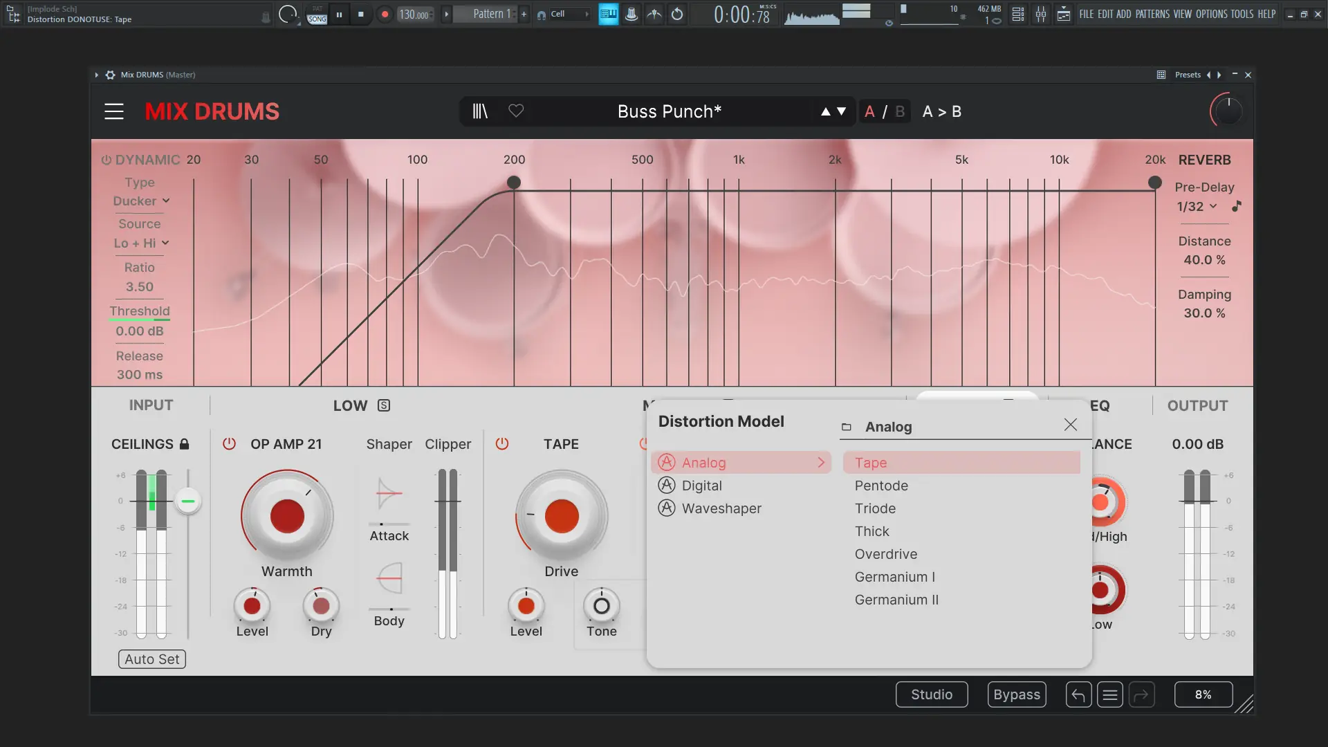- Высокая эффективность при обработке как отдельных ударных, так и всего барабанного баса
