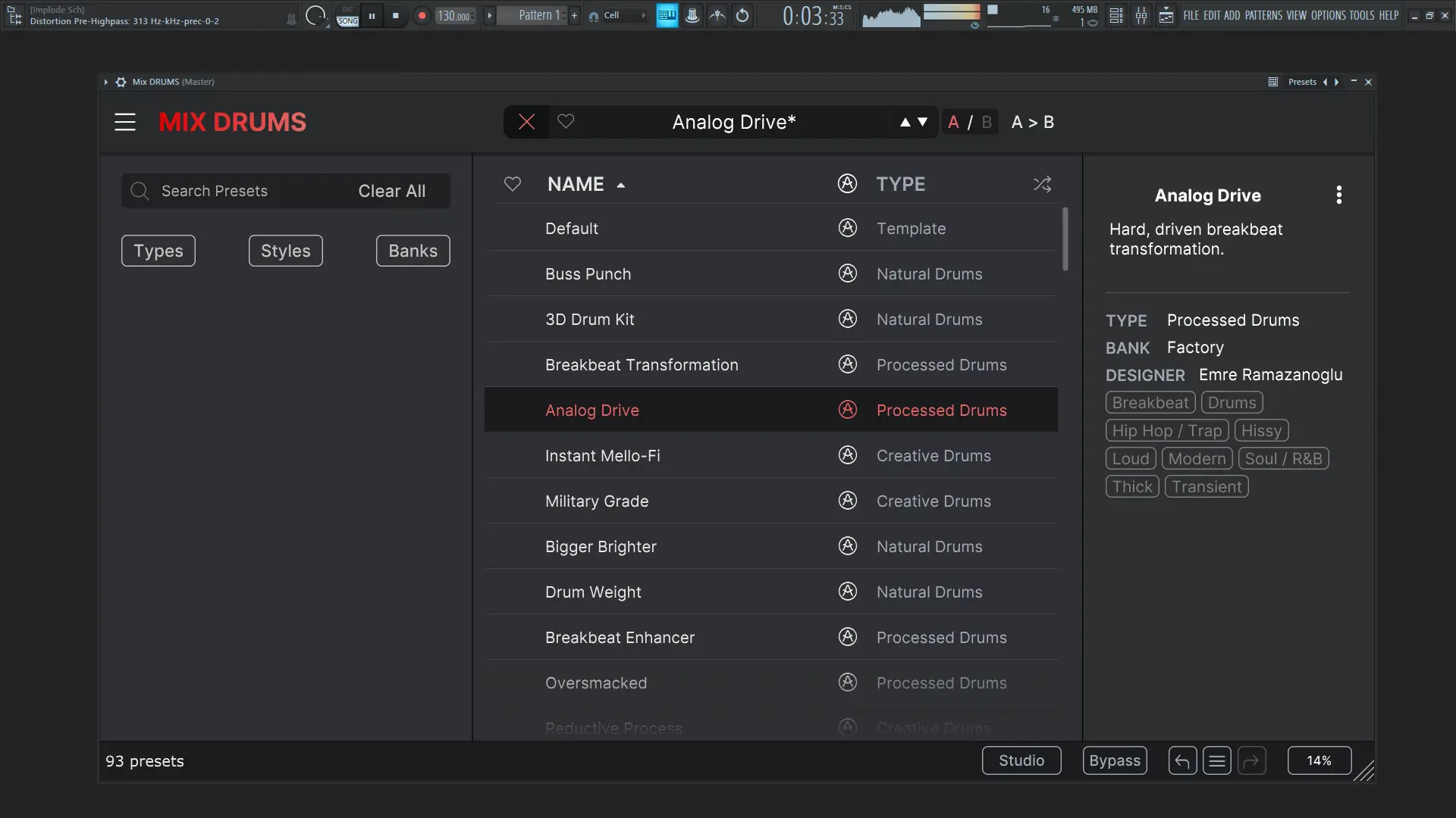 Mix DRUMS — это инновационный процессор ударных, созданный для быстрого и эффективного улучшения звучания барабанов в проектах любой сложности. Разработанный с участием признанного специалиста в области микширования, этот плагин использует передовые алгоритмы цифровой обработки сигнала от Arturia, чтобы превратить плоские и невыразительные ударные в насыщенные, мощные и живые элементы композиции. Он идеально подходит как для начинающих, так и для профессиональных звукорежиссёров, стремящихся к максимальной выразительности без лишних настроек.