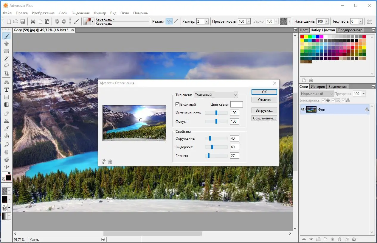 Artweaver 7 предоставляет пользователям полнофункциональную среду для цифрового творчества. Благодаря большому количеству предустановленных кистей, программа позволяет создавать высококачественные изображения, максимально приближенные по текстуре к настоящим художественным техникам. Каждую кисть можно настроить под конкретные нужды: изменить жесткость, прозрачность, поведение при нажатии и другие параметры, что особенно удобно при работе с графическим планшетом. Инструменты вроде градиента, лассо, волшебной палочки и других обеспечивают точный контроль над каждым элементом композиции.