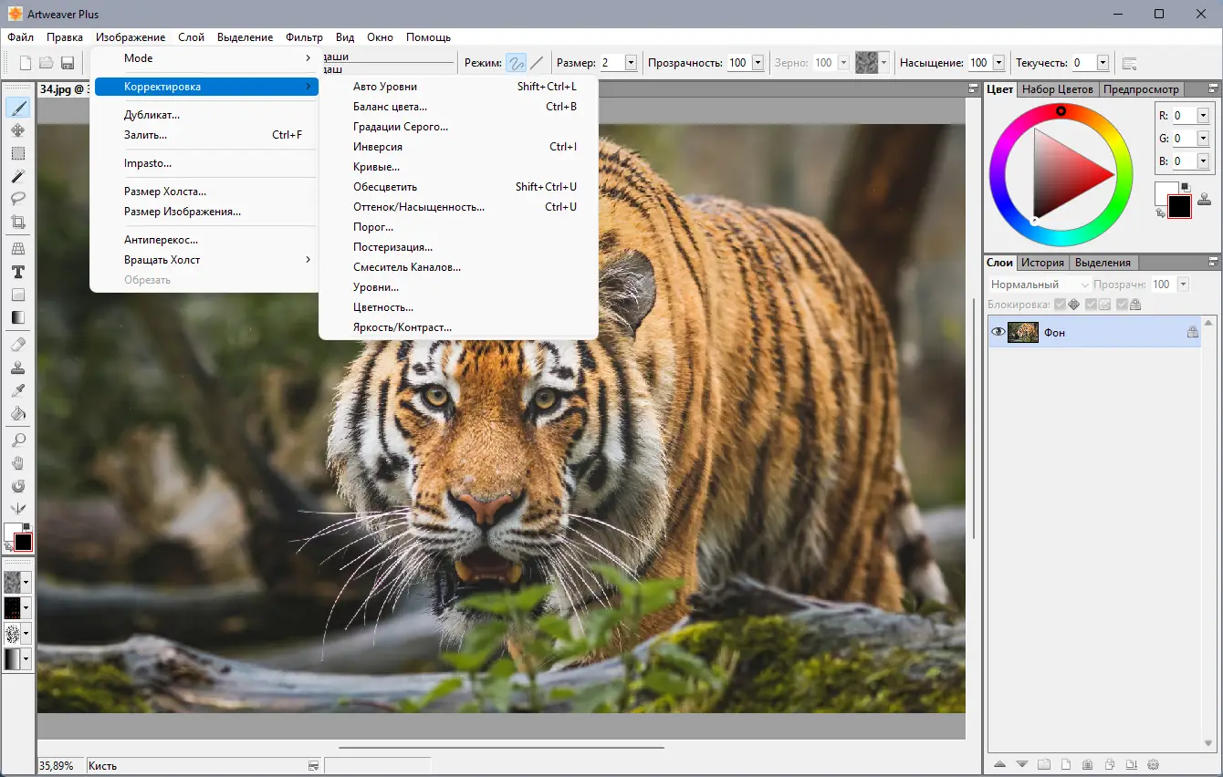 - Набор фильтров для стилизации: размытие, резкость, шум, искажения и текстуры, расширяющих возможности художественной обработки.
