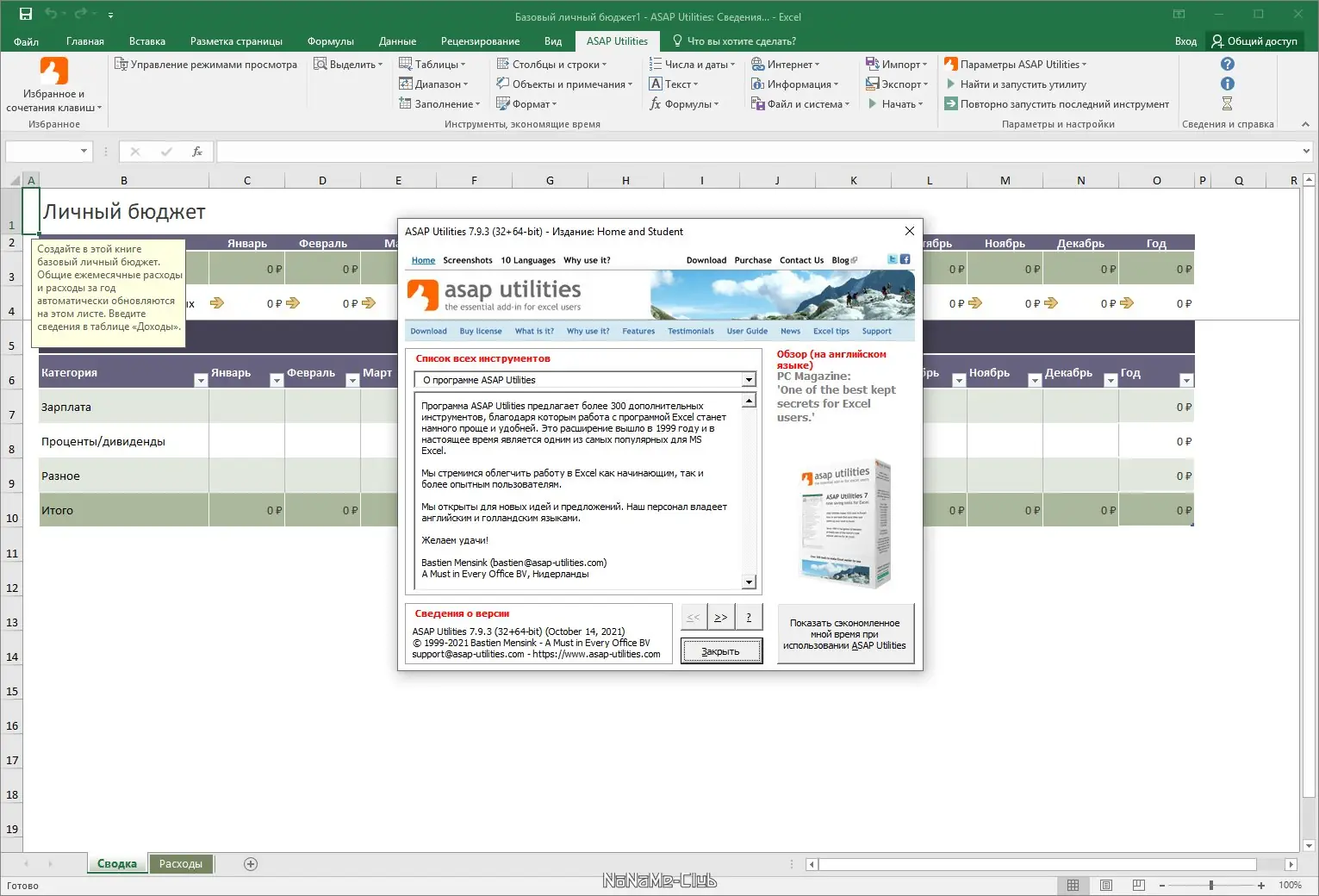 Скачать ASAP Utilities for Excel
