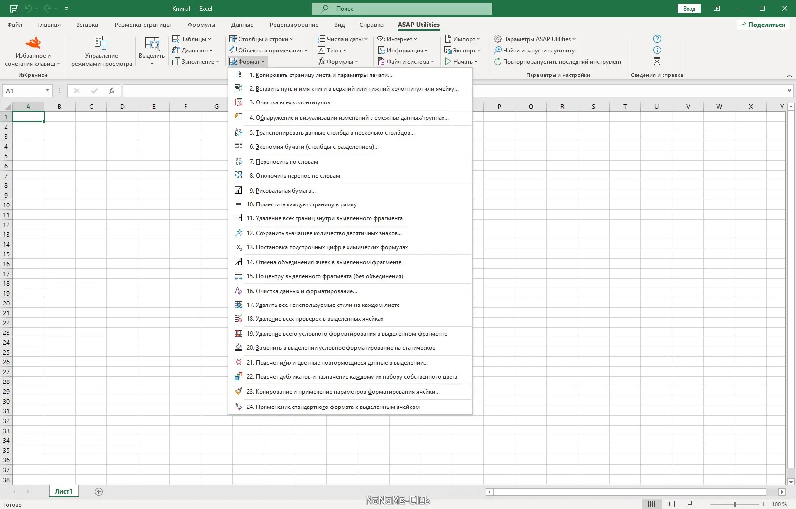 Работа с ASAP Utilities for Excel