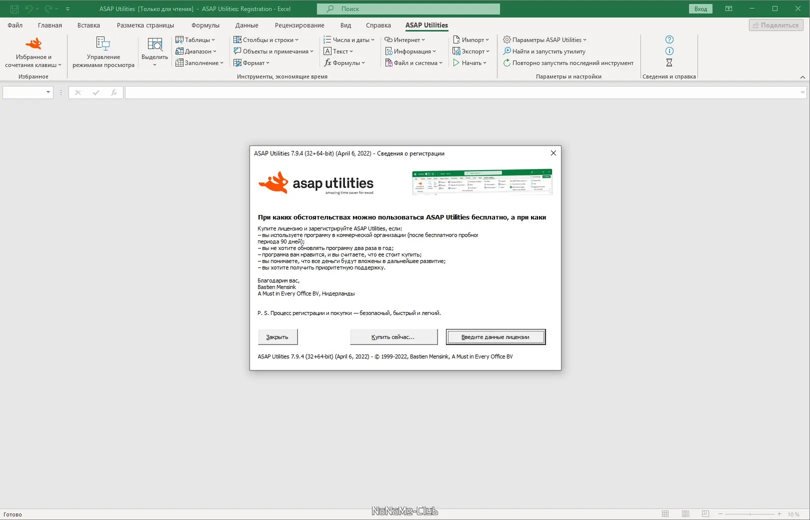 Скачать ASAP Utilities for Excel