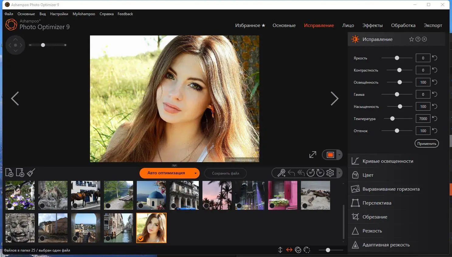 Программа Ashampoo Photo Optimizer разработана для быстрого и качественного улучшения цифровых фотографий без необходимости глубоких знаний в области обработки изображений. Она сочетает в себе мощные алгоритмы автоматической коррекции и широкие возможности ручной настройки, что делает её универсальным инструментом для любого пользователя. Программа эффективно справляется с типичными проблемами снимков — тусклыми цветами, низким контрастом, некорректным балансом белого и искажённой перспективой. Благодаря интуитивному интерфейсу, все функции доступны в пару кликов, а пакетная обработка позволяет оптимизировать сразу целые коллекции изображений.