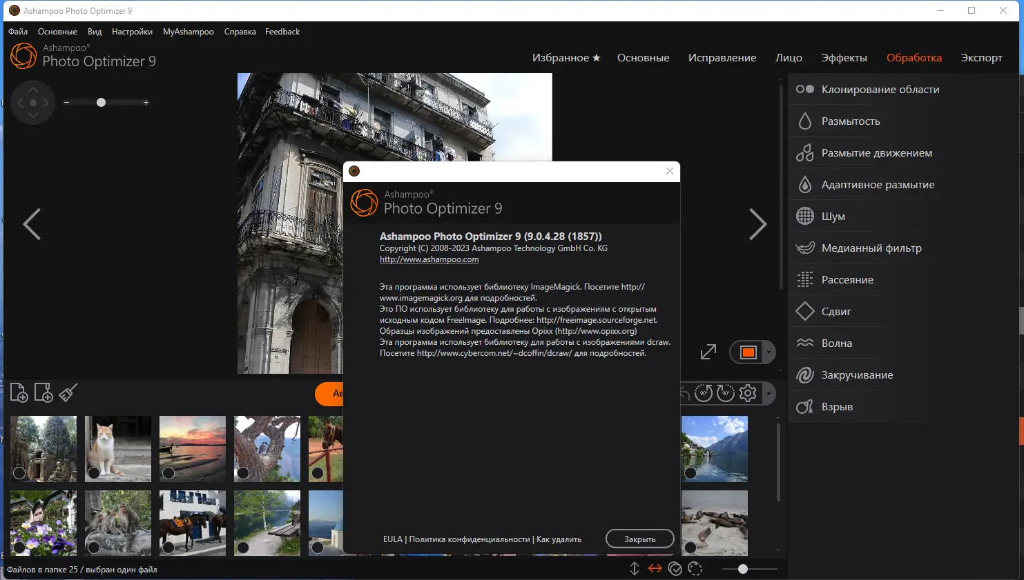 Работа с программой начинается с загрузки изображения через проводник или перетаскивание файла в интерфейс. После открытия снимка пользователь может выбрать автоматическую оптимизацию, которая мгновенно улучшит качество фото, или перейти в ручной режим для точной настройки. Категории инструментов, такие как «Цвет», «Резкость», «Эффекты» и «Коррекция», организованы логично и доступны в один клик. Для часто используемых функций предусмотрен раздел «Избранное», куда можно добавить нужные инструменты. Редактирование не изменяет оригинальный файл — все изменения можно отменить, а сравнение «до и после» помогает оценить результат. Экспорт готовых изображений возможен по электронной почте, на веб-портал Ashampoo, как фон рабочего стола или в виде распечатки.