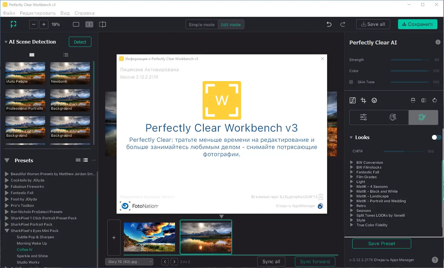 Athentech Perfectly Clear WorkBench — это специализированный инструмент для обработки изображений, разработанный на основе более чем десятилетних исследований в области цифровой фотографии. Программа использует комплексный подход к коррекции снимков, объединяя в себе автоматические настройки и гибкие ручные параметры. Она эффективно справляется с ограничениями, присущими большинству цифровых камер, включая проблемы с экспозицией, балансом белого и передачей цвета кожи.
