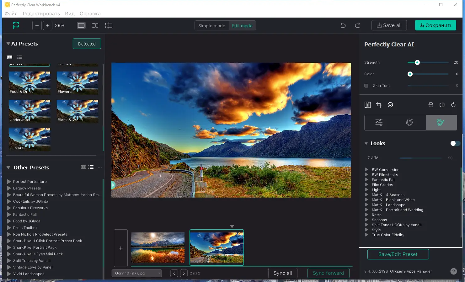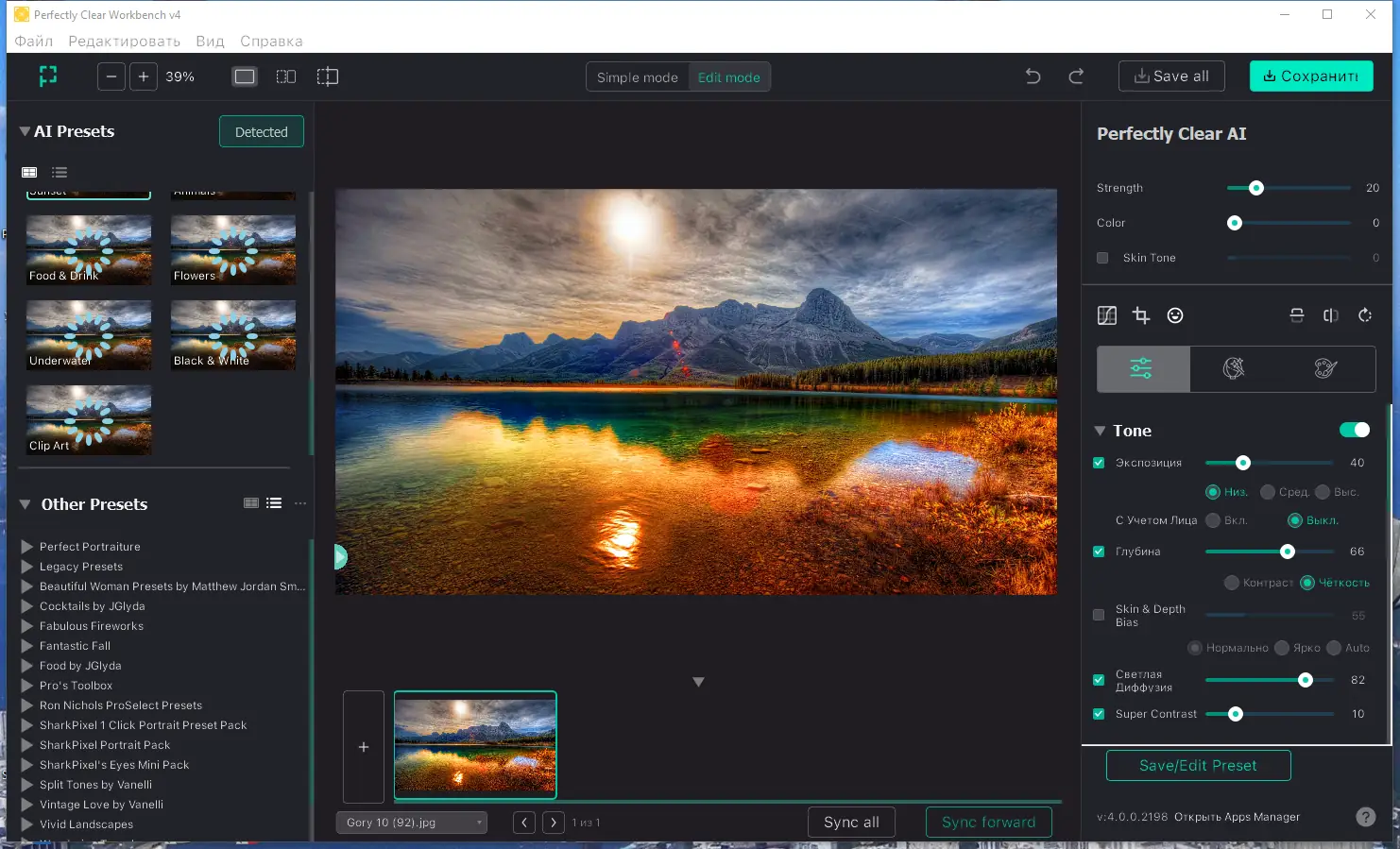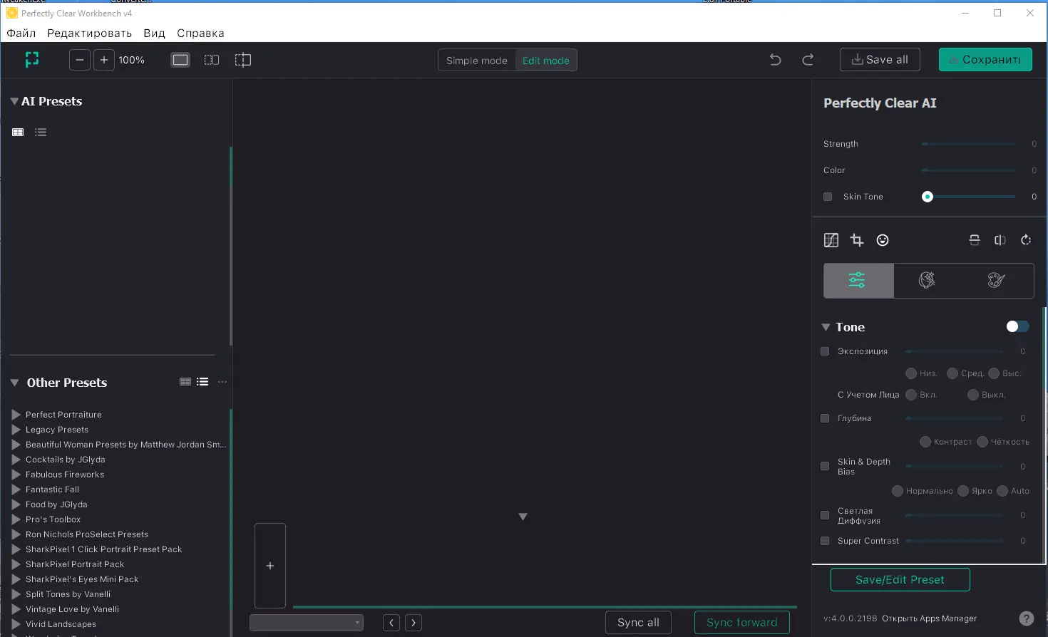 Работа с Athentech Perfectly Clear WorkBench