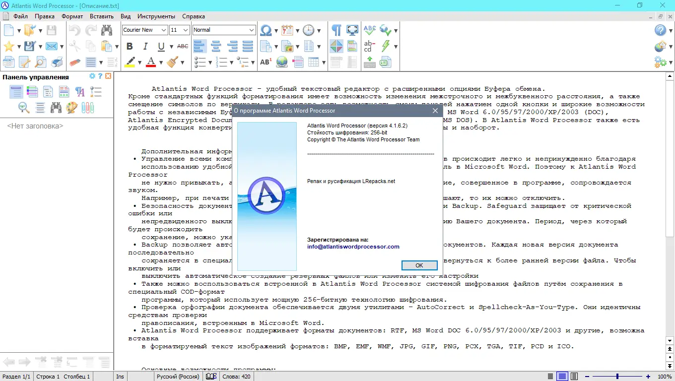 Atlantis Word Processor сочетает в себе мощь профессионального редактора и простоту использования, что делает его подходящим как для новичков, так и для опытных пользователей.
