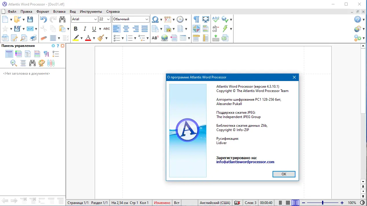 Atlantis Word Processor — это компактный и функциональный текстовый редактор, разработанный для создания, редактирования и безопасного хранения документов. Программа поддерживает широкий спектр форматов, включая DOC, DOCX и RTF, а также предлагает множество инструментов для форматирования, шифрования и резервного копирования. Интерфейс напоминает классический Microsoft Word, что делает освоение приложения интуитивно понятным.