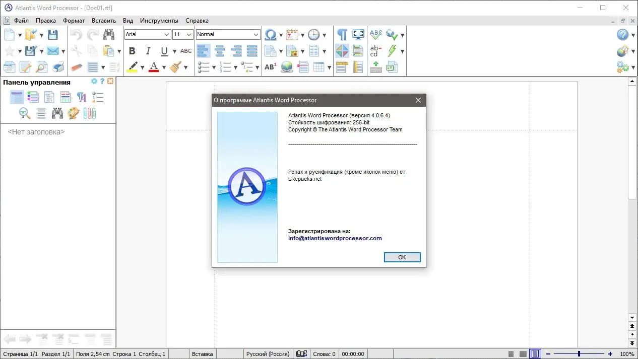 Atlantis Word Processor — это мощный и гибкий текстовый редактор, разработанный для эффективной работы с документами различных форматов. Программа поддерживает создание, редактирование и сохранение файлов в популярных форматах, включая DOC, DOCX и RTF, а также предлагает расширенные функции форматирования, шифрования и резервного копирования. Интерфейс приложения интуитивно понятен, напоминая классический вид Microsoft Word, что позволяет быстро начать работу без периода адаптации.