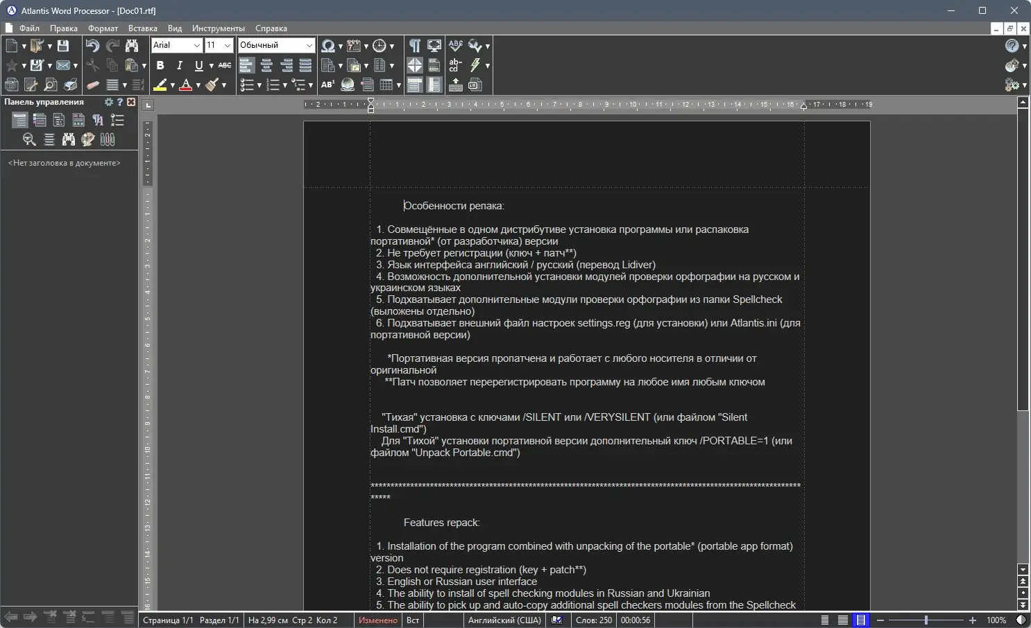 Программа доступна для загрузки в различных конфигурациях, включая установочную и portable-версию, что обеспечивает гибкость в использовании. Дистрибутив включает все необходимые компоненты, в том числе модули проверки орфографии на русском и украинском языках. Установка проходит быстро, с возможностью тихого режима через командную строку. Поддержка на русском языке реализована полноценно, благодаря качественному переводу от Lidiver. Atlantis Word Processor остаётся одним из самых надёжных решений в категории текстовых редакторов для Windows.