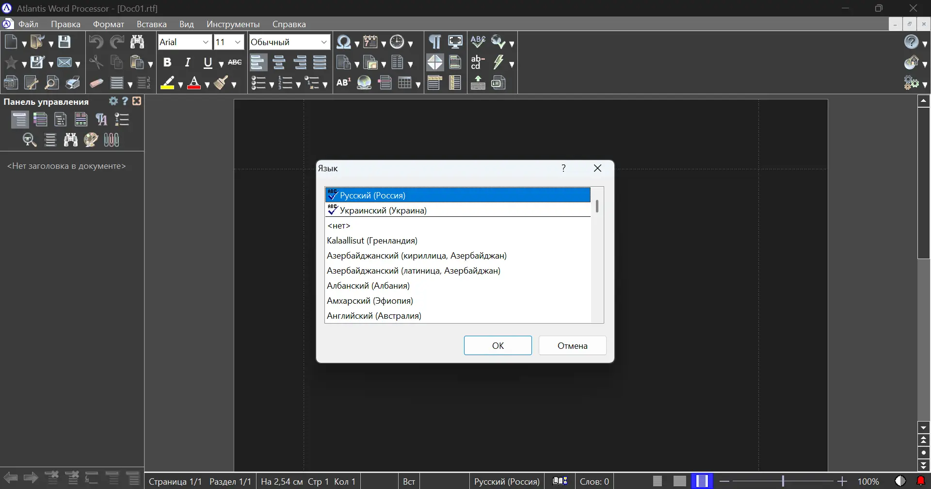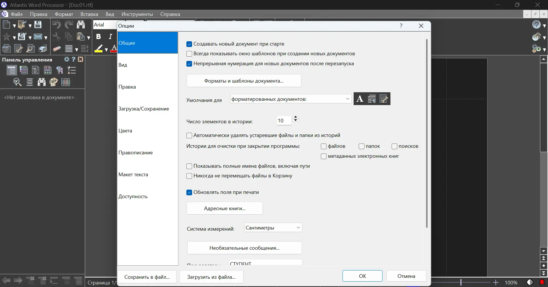 Работа с Atlantis Word Processor