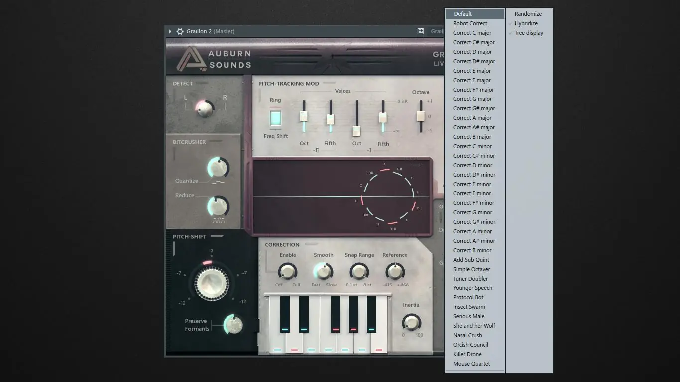 Настраиваемый алгоритм отслеживания высоты тона делает Graillon универсальным решением для вокальной обработки.