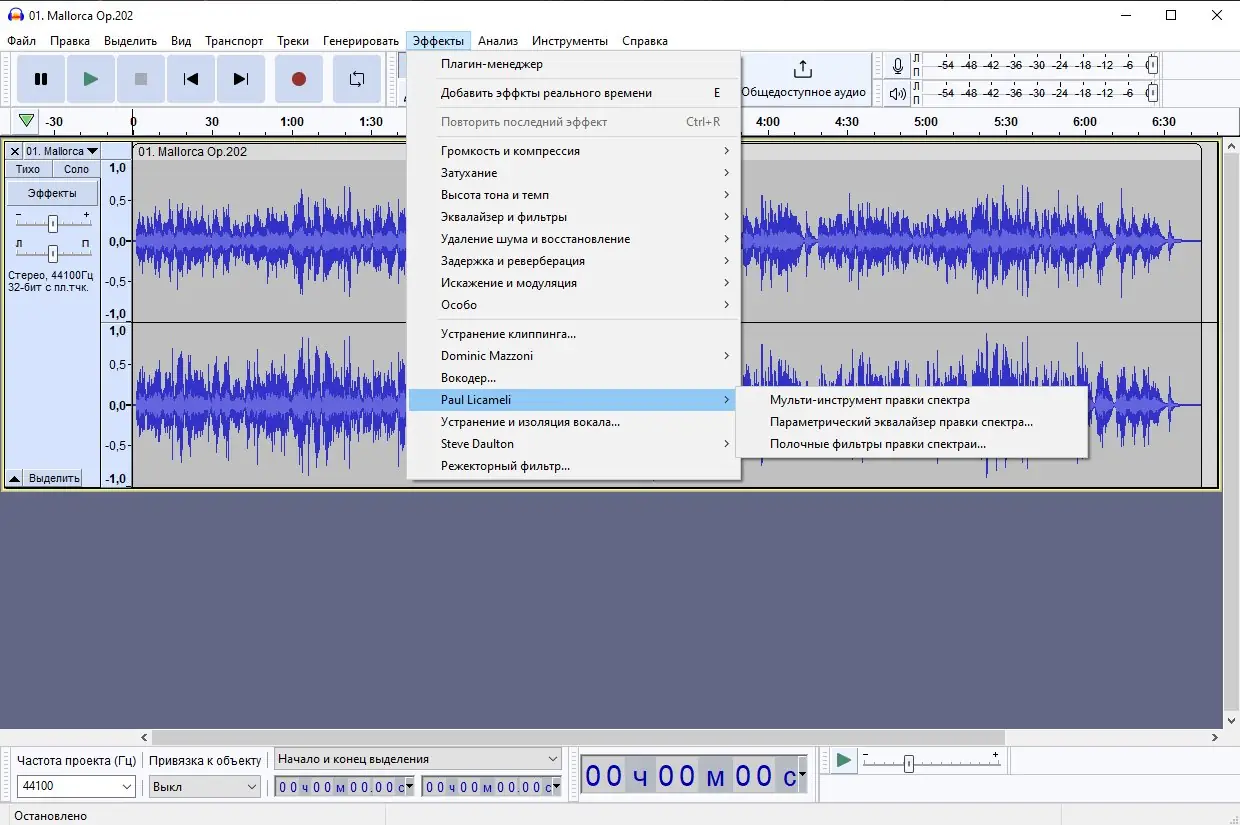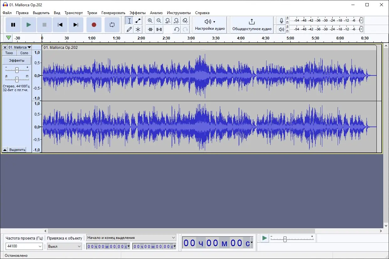 Audacity — это свободный и мощный редактор аудиозаписей, доступный на русском языке. Программа поддерживает запись, оцифровку и редактирование звука, работает с популярными форматами, включая MP3, WAV и Ogg Vorbis, и позволяет выполнять сложные операции, такие как изменение темпа без смены высоты тона или удаление шумов. Подходит как для новичков, так и для опытных пользователей, работающих с голосом, музыкой или подкастами.