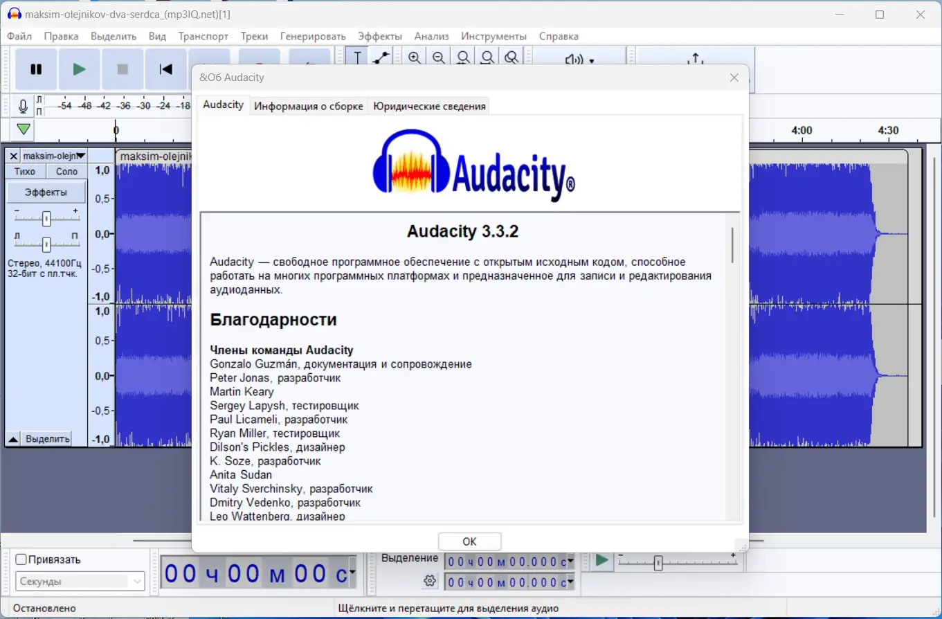 Audacity — это свободный аудиоредактор с открытым исходным кодом, доступный на русском языке и поддерживающий широкий спектр операций с аудиофайлами: от записи голоса до сложного редактирования и анализа звука. Программа работает на различных платформах и поддерживает экспорт в популярные форматы, включая MP3, WAV и Ogg Vorbis.