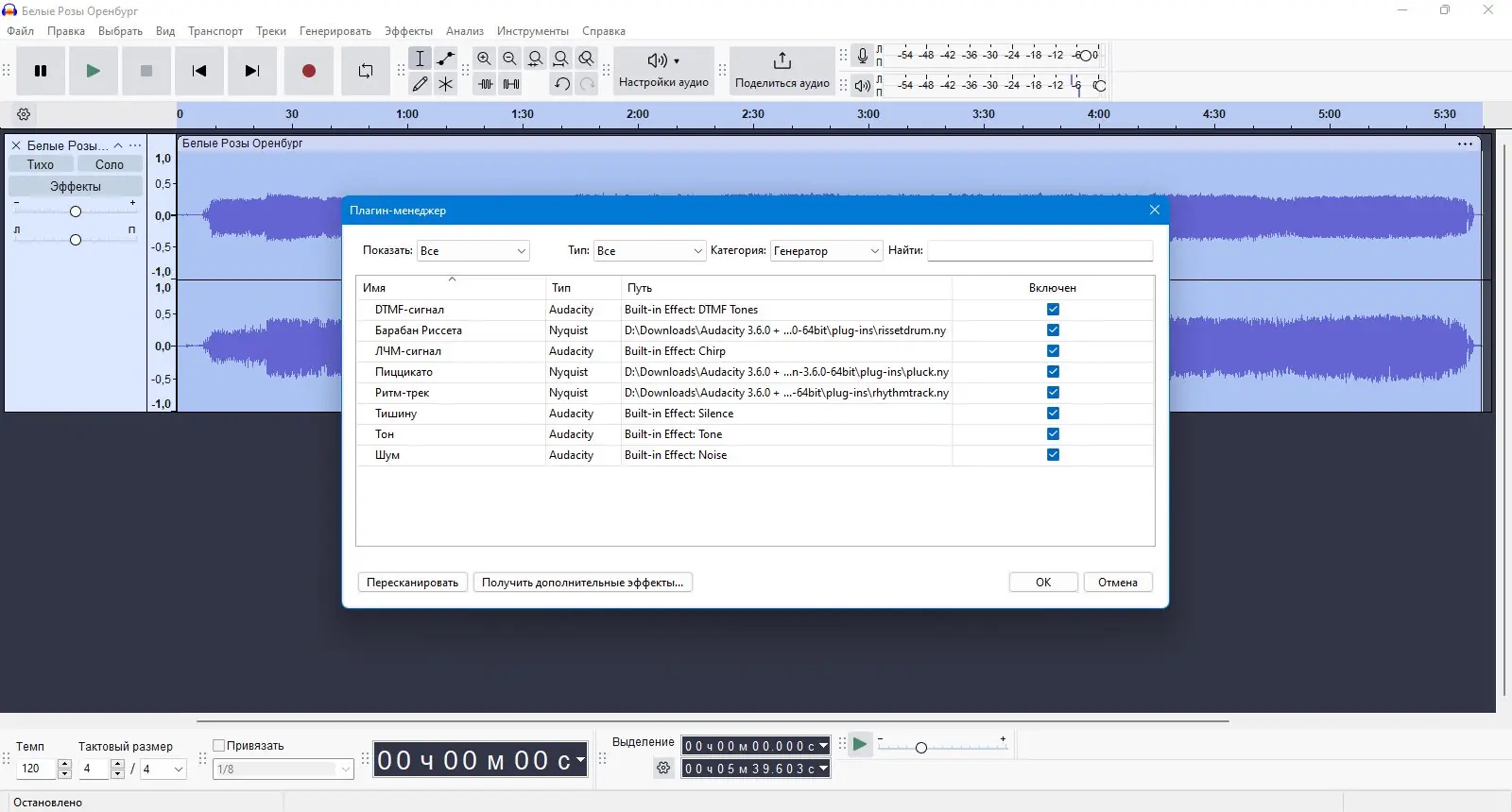 Работа с Audacity