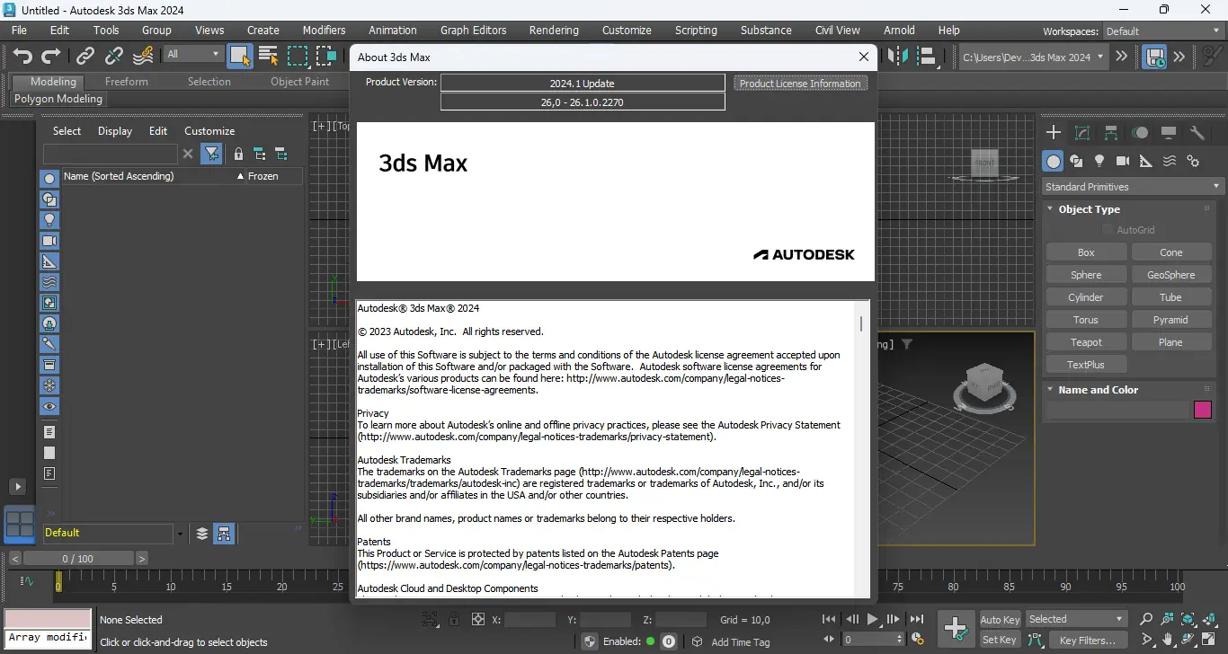 Autodesk 3ds Max — мощное программное обеспечение для трёхмерного моделирования, анимации и визуализации, предназначенное для профессионалов в области дизайна, архитектуры, кино и игр. Программа предоставляет расширенные инструменты для создания сложных 3D-сцен, реалистичного рендеринга и кинематографических эффектов. С её помощью можно разрабатывать как отдельные объекты, так и целые виртуальные миры с продуманной динамикой и освещением.