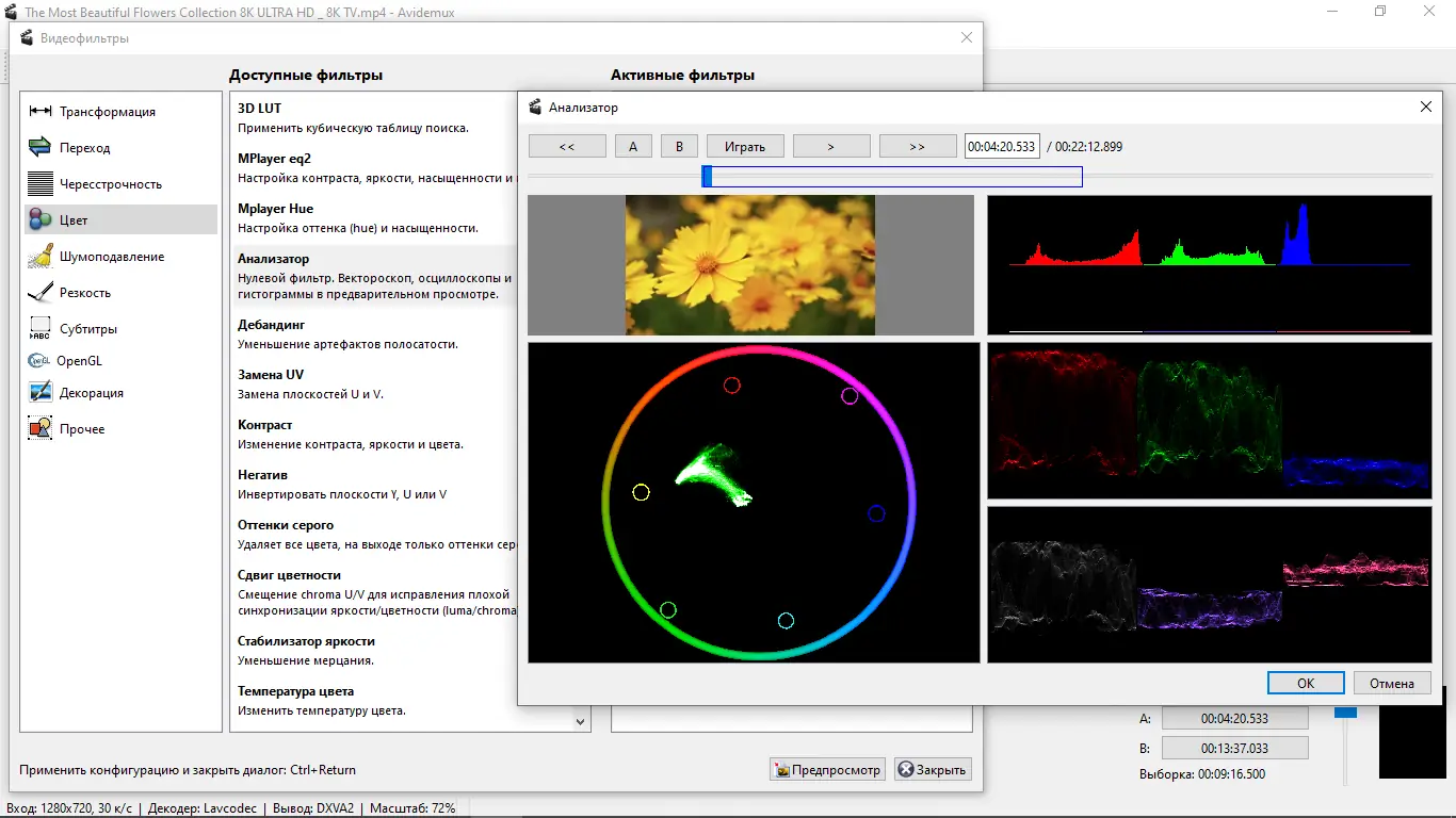 - Фильтры для улучшения качества: деинтерлейсинг, ресайзинг, шумоподавление, повышение резкости