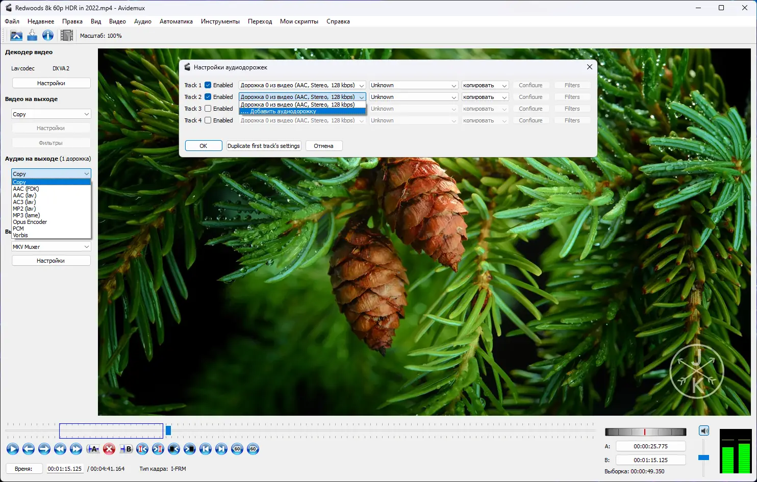 - Работа с субтитрами и аудиодорожками, включая импорт и экспорт.