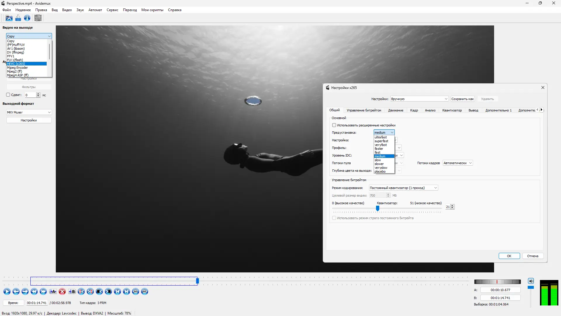 Работа с Avidemux