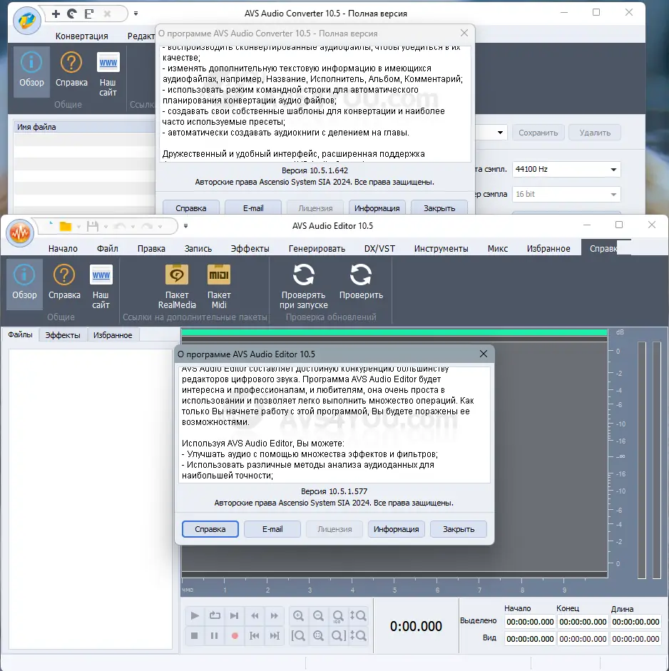 AVS Audio Software — это универсальный набор из двух приложений для полного цикла работы с аудиофайлами: редактирования и конвертации. В комплект входят AVS Audio Editor и AVS Audio Converter, которые позволяют редактировать звук с эффектами, нарезать треки, улучшать качество и преобразовывать файлы в различные форматы. Программа подходит как для начинающих, так и для продвинутых пользователей, желающих получить контроль над аудиоданными.