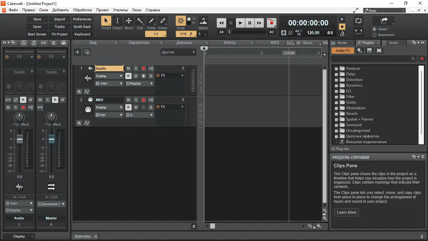 - Поддержка неограниченного числа аудио и MIDI-дорожек
