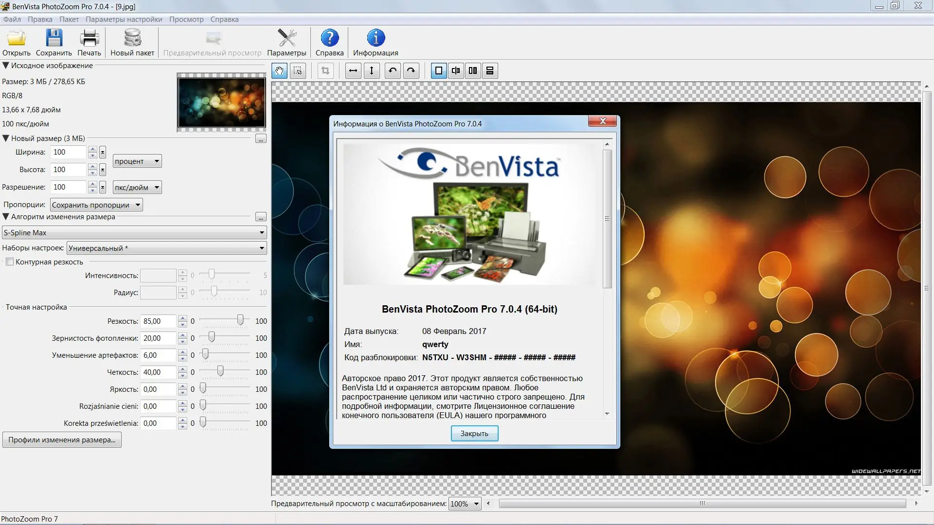 Работа с Benvista PhotoZoom
